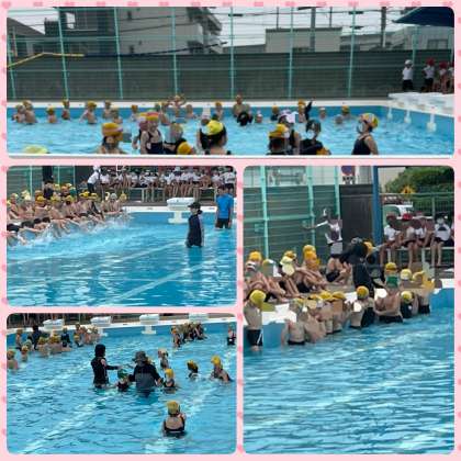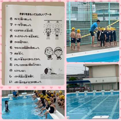 いよいよ、小学校最初のプールの時間になりました。広いプールに子ども達は、ワクワクしていました。水の深さを浅くしてもらって・・・・楽しいプール学習の時間を過ごしました。