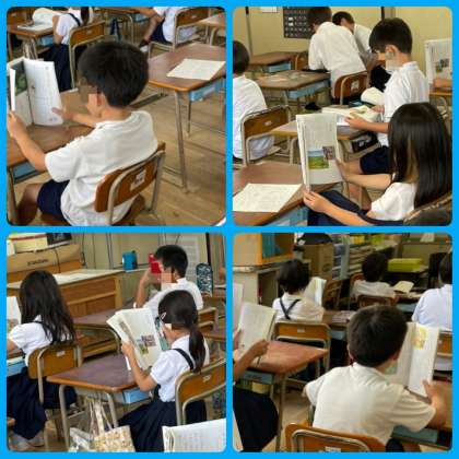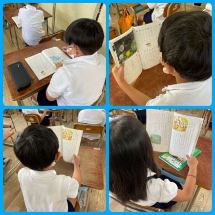 「風のゆうびんやさん」は、場面の様子や登場人物の行動など、内容の大体を捉えたり、「だれが」「どうした」がよくわかるように、文や語のまとまりの区切りを表す句読点に気をつけて読んだり、聞き手に合わせた声の大きさに読んだりすることをめあてに練習をしています。「たんぽぽ」も、背中を伸ばして正しい姿勢で音読をしていました。