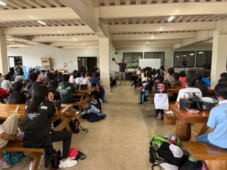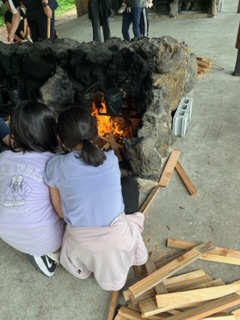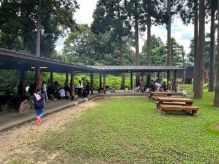 天気が急変して豪雨が降りましたが、また晴れて飯盒炊飯の準備をしています。