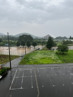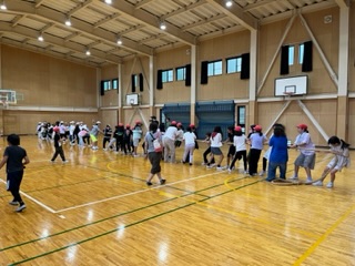 最終日は、朝から雨が降っています。朝の集いは、体育館で行いました。