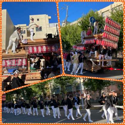 土曜日と日曜日の加美のお祭りの様子です。加美小学校の子ども達も、たくさん「だんじり」をひいていました。