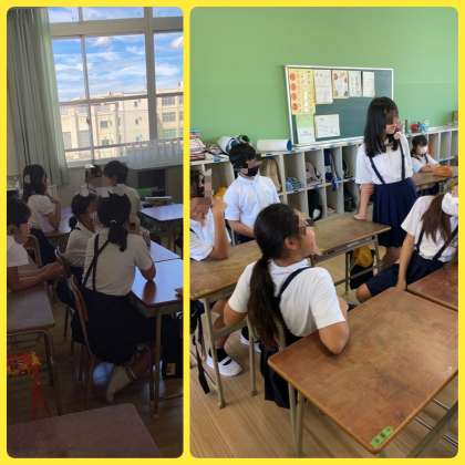 クラスで諸連絡が終わった後、心をほぐすゲームをしています。