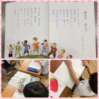 「あるけ あるけ」の音読と書いている内容について学習をしました。子ども達は楽しそうに音読していました。