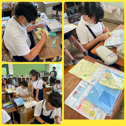 糸と針を持って・・・「玉結び」「玉止め」「なみ縫い」「返し縫い」など、一生懸命頑張って取り組んでいます。