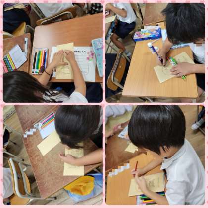 1年生は、敬老の日にむけて、お手紙を書いていました。