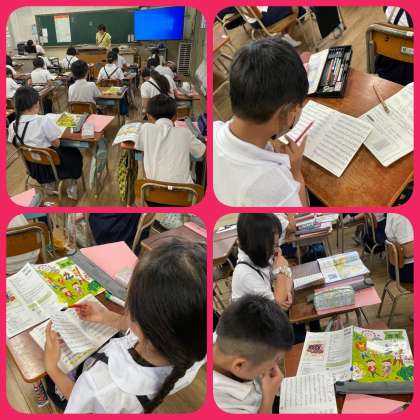 3年生の音楽の授業の様子です。「ツバメ」という新しい曲の学習をしています。