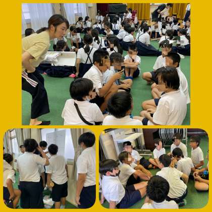 運動会のリレーの走順を決めています。どのグループも真剣です。