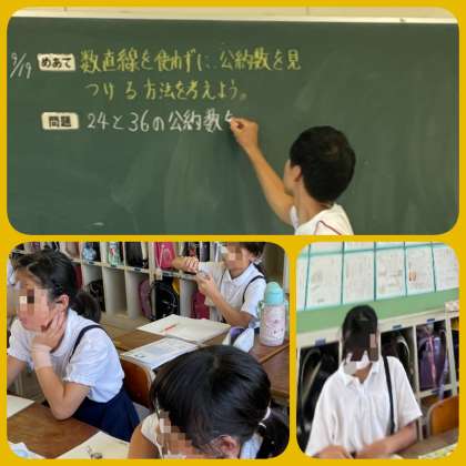 「数直線を使わずに、公約数を見つける方法」を学習しています。