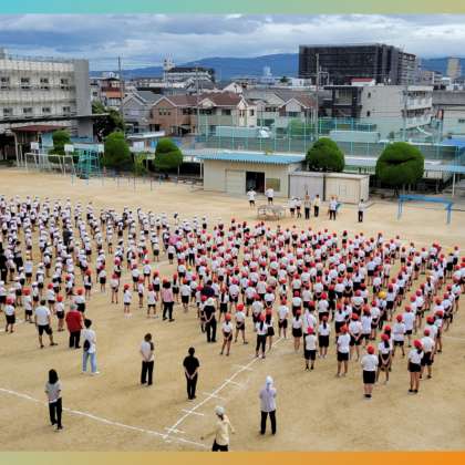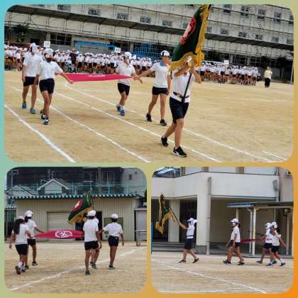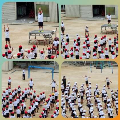 昨日に引き続き、運動会の全体練習がありました。並び方や、ラジオ体操、行進などだんだん上手になってきていました。代表委員の子ども達も頑張っていました。