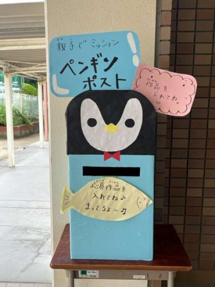 完成した作品は、玄関に設置している「ペンギンポスト」にいれてください。