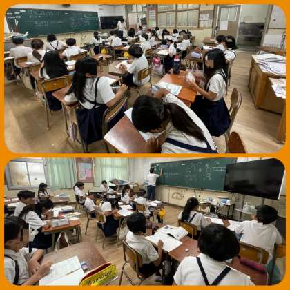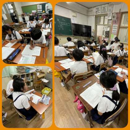 2つの数量の関係について整数の場合で何倍になるかという割合を用いて比較したり、割合から数量を求める学習をしています。