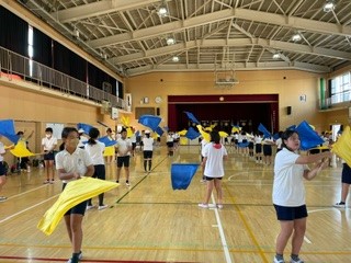 今日もフラッグの練習です。みんなの動きがそろっていて綺麗です。