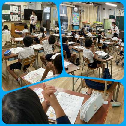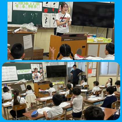 「山のポルカ」では、音符や休符の学習をして、リズム打ちを楽しんでいます。