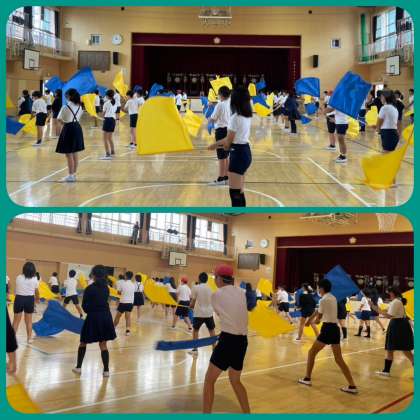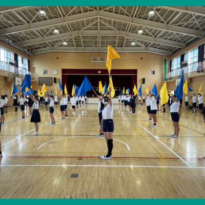 火曜日の運動会に向けて、フラッグの動きの最終確認です。小学校生活最後の運動会、素晴らしい団体演技を見せてくれると思います。
