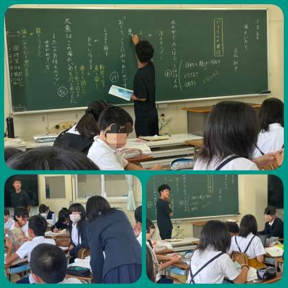 「海のいのち」の学習をしています。読み取った内容について、自分の意見を発表し合っています。