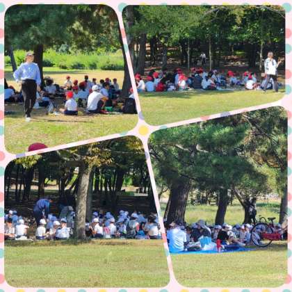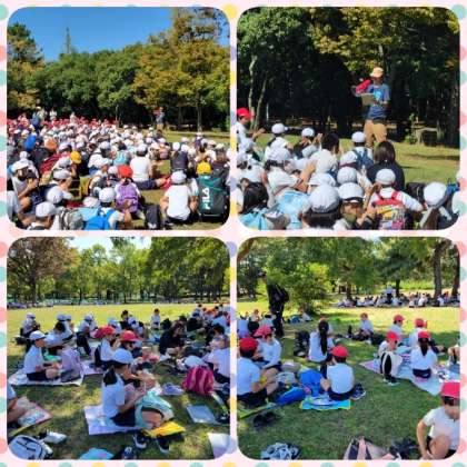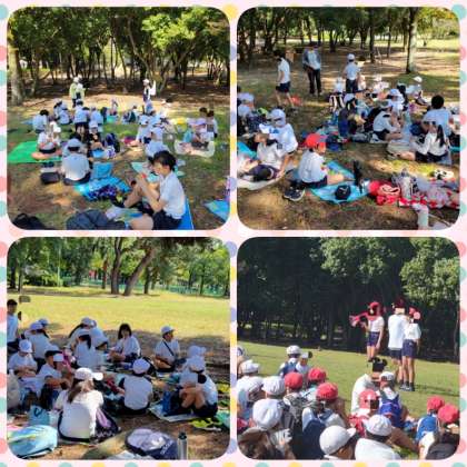 たてわり班会議で話し合い、決めた班のルールを守り、活動することができました。ゴールにつくと、班のみんなで遊び、お弁当を食べました。