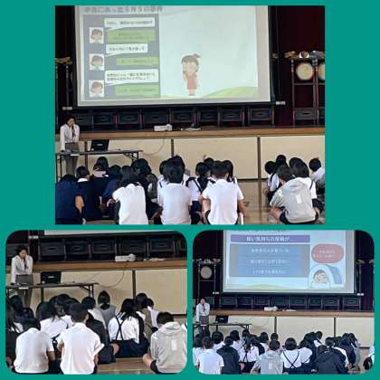 非行防止教室がありました。本当にあったSNSの事件のお話などがあり、子ども達は真剣に聞いていました。