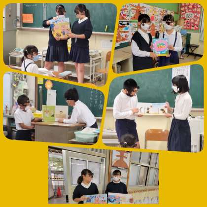 図書委員会の6年生が、1年生に絵本の読み聞かせや紙芝居をしています。