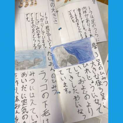 教材「ビーバーの大工事」の学習後、いろいろな動物のひみつを調べました。