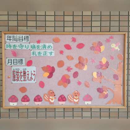 玄関の掲示板には、11月の生活目標が掲示されていました。