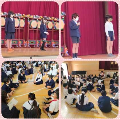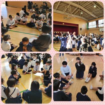 「学校クイズ」でした。「加美小学校の校長先生の名前は?」「加美小学校は何クラス?」「加美小学校は何階建て?」など学校に関するクイズがでてきました。みんな楽しに活動していました。