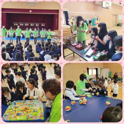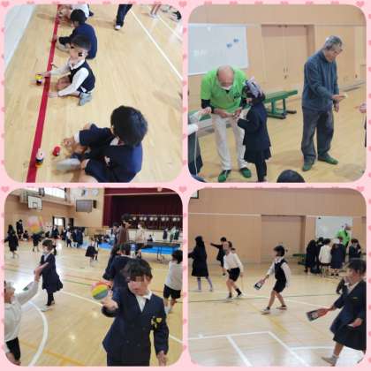 地域にお住まいの方々をお招きして、昔のいろいろな遊びを教わって、一緒に楽しく遊びました。