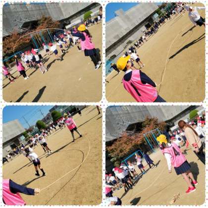 「なわとび週間」は、今週から長縄をしています。運動委員会の子ども達は、1年生と2年生の長縄を回す活動をしています。
