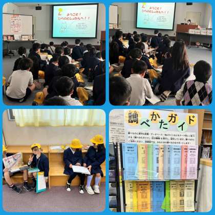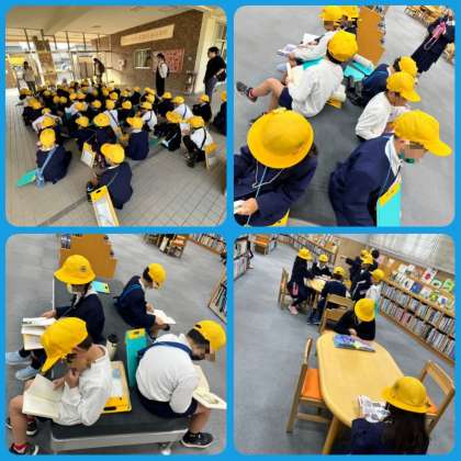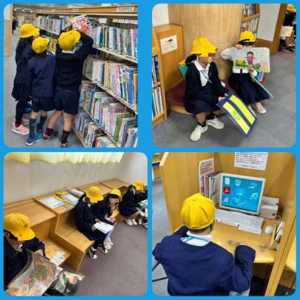 11月24日(金)に、平野図書館に見学に行きました。図書館の使い方などのお話を真剣に聞いていました。