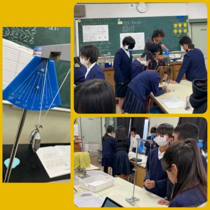 理科の授業の様子です。「ふりこの長さを変えたときの1往復する時間のきまりを調べよう」の学習をしていました。
