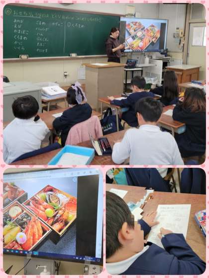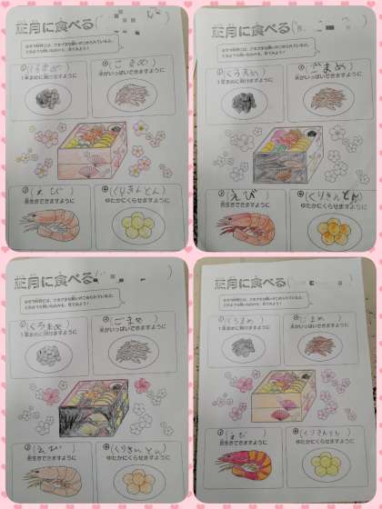 生活科の時間の様子です。今日は、「おせち料理にはどんな願いがこめられているのか」を知りました。