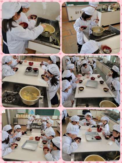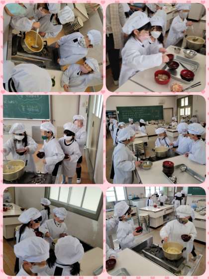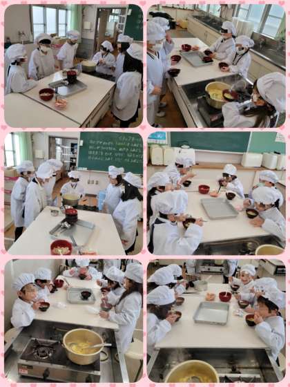 学校で調理をするのは、はじめてなので、少し緊張していましたが、先生の話をしっかり聞いて、衛生と安全に気をつけて調理していました。