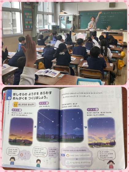「ほしぞらのようすをあらわすおんがくをつくりましょう」の学習をしました。