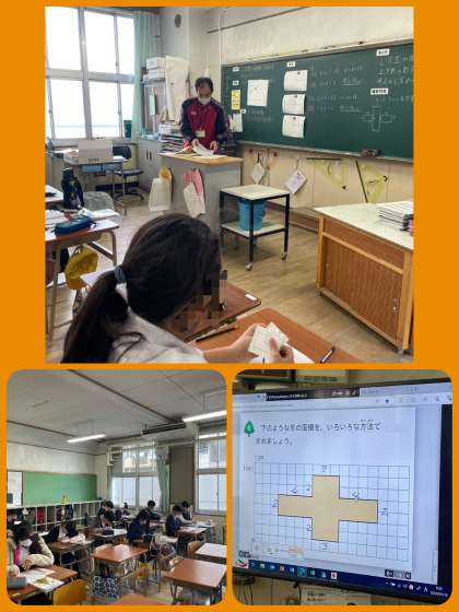 「L字型の面積の求め方を考えよう」の学習をしています。