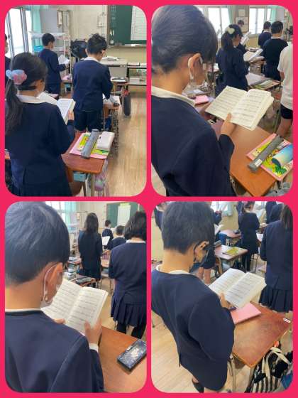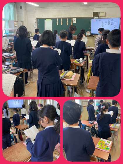 音楽の授業の様子です。「ビリーブ」や「北風小僧の寒太郎」などの歌を歌っていました。
