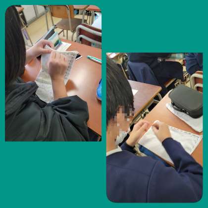 在校生へプレゼントを作っています。