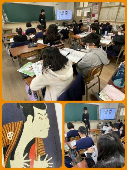 教材名「浮世絵 海をわたったジャパン・ブルー」を通して、大切にしたい日本の伝統と文化について考えていました。