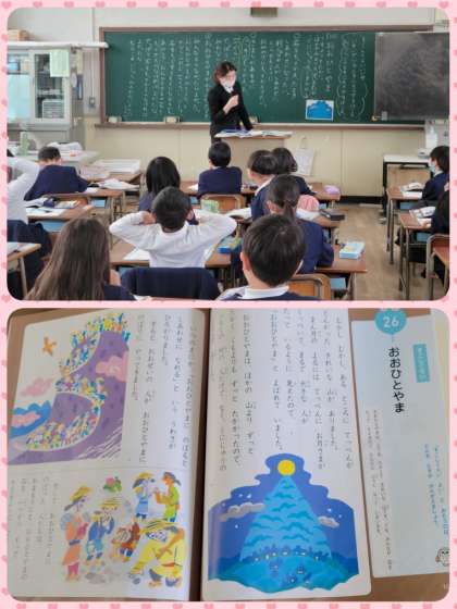 教材「おおひとやま」を通して、きまりを守る大切さについて学習していました。