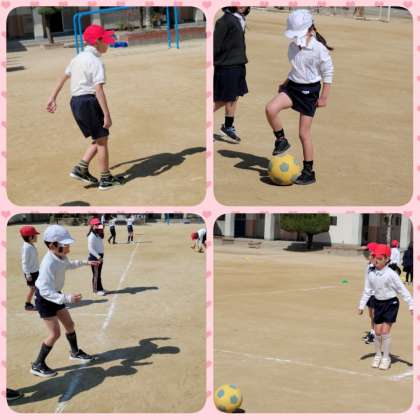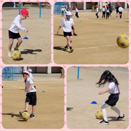 「ボールけり運動」をしています。足で止めて蹴ることが上手になってきました。