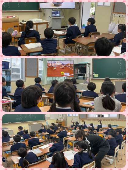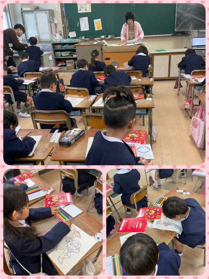 塗り絵をしている姿勢もテレビを見ている姿勢もとても立派です。早く学校に慣れてくださいね。