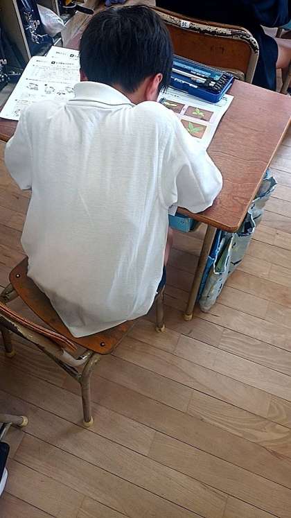 理科のテスト中です。「テスト」と聞くと、子どもたちはすごく身構えますよね。