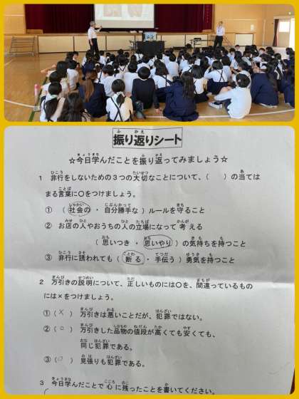 5年生の非行防止教室がありました。子ども達は、熱心に話を聞いていました。