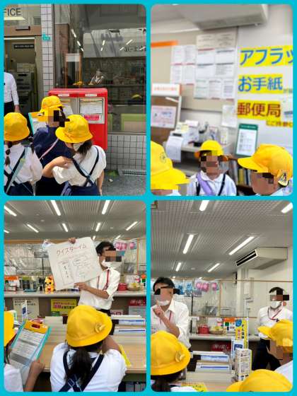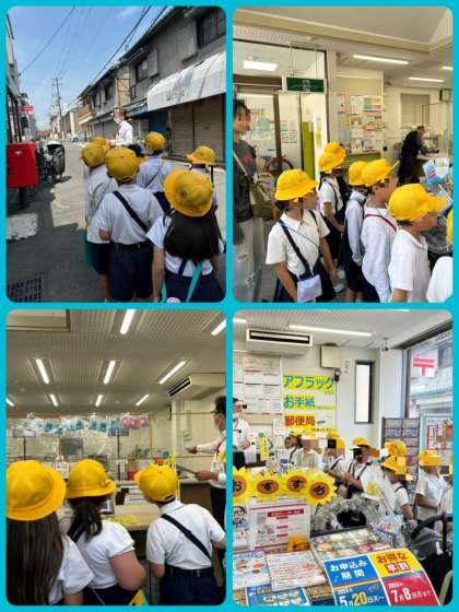 生活科の学習で校区探検に行きました。6つのグループに分かれて探検しました。お話を聞いたり、見学をしたり、インタビューをしたりしました。