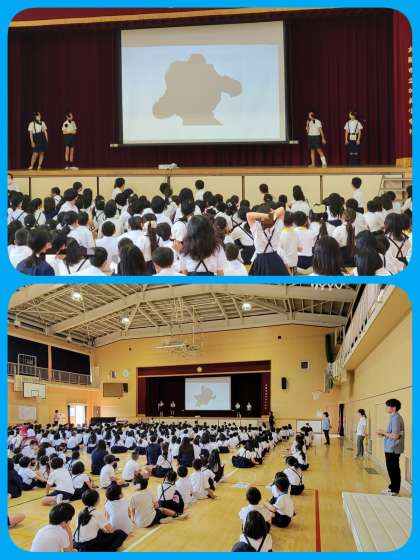 集会委員会による児童集会がありました。「シルエットクイズ」でした。