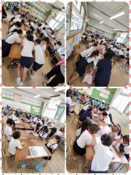 加美スマイルフェスティバルに向けて、たてわり班活動がありました。今日は、お店を回る順番を決めました。