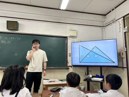 「三角定規を組み合わせてできる角度を調べよう」をめあてに学習する4年生。