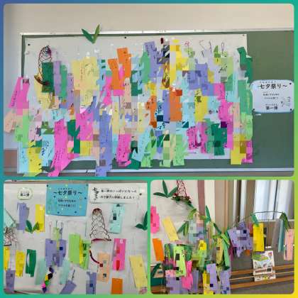 図書館の様子です。短冊に好きな本のタイトルが書いてありました。