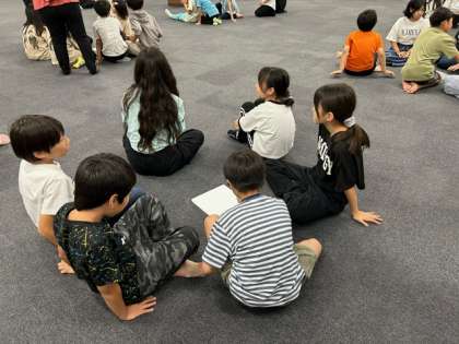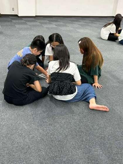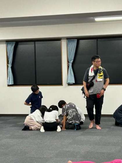 雨のためレクリエーションに切り替え みんなでゲームを楽しんでいます