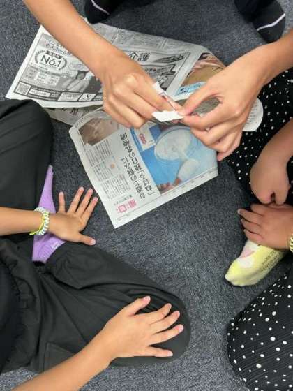 どこの班が一番ながーく切れるか競っています