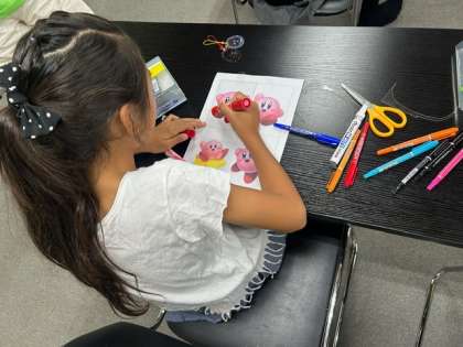写真は、宿題後に作成したプラ板キーホルダーです。