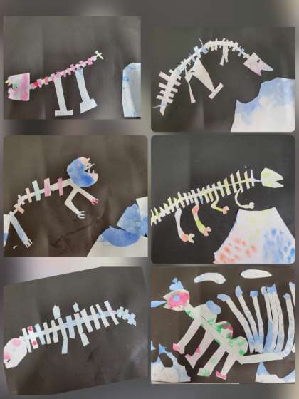 水彩の技法、ぼかしやにじみで骨を作っています。